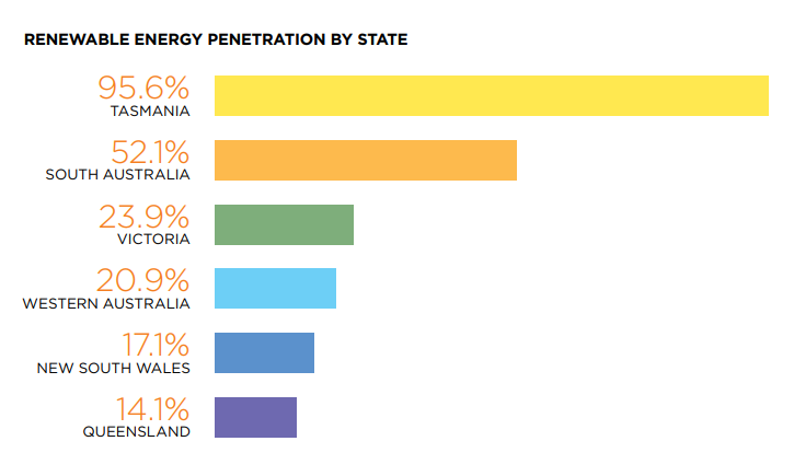 Renewable energy penetration varies from state to state.
