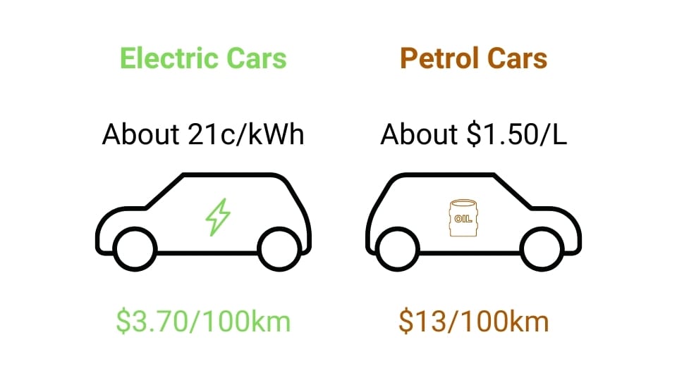 Powering your EV with solar power is already possible with the technology available to not only utilise the energy but to meter and time the user to maximise efficiency. Battery electricity can also be used to reduce the cost of EV charging. With the comparison based on Australian prices, EVs are about 4x cheaper to operate per kilometer!